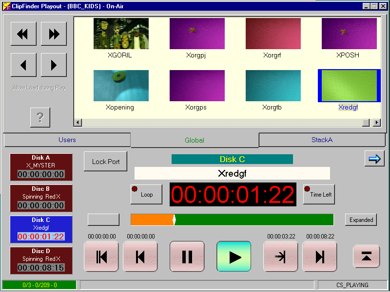 Playout is assisted with a custom keyboard providing instant access to 10 sets of 30 clips