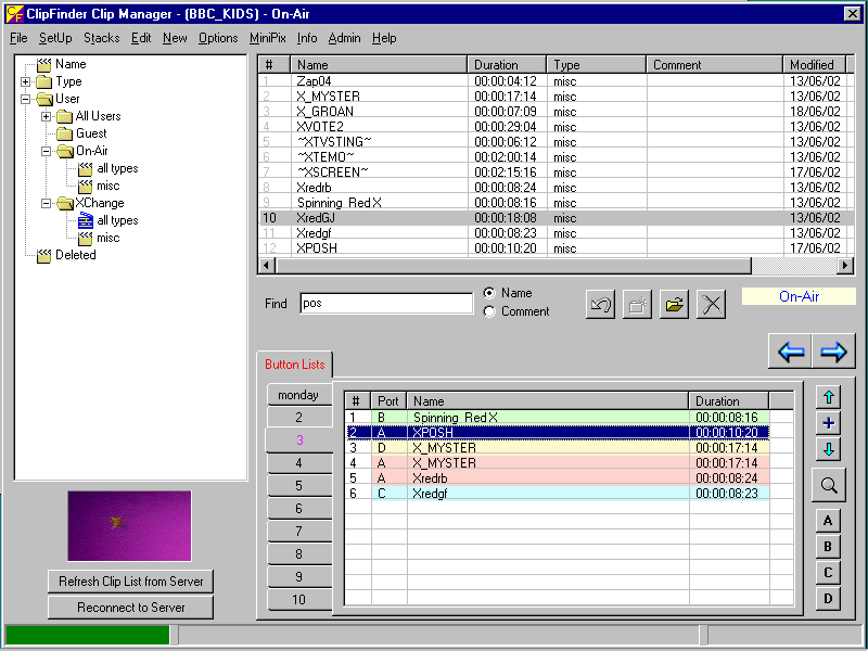 video server and comprehensive clip management facilities